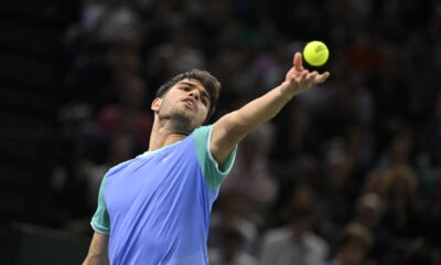 Carlos Alcaraz lifted the Cincinnati Masters trophy for the first time on Monday when Jannik Sinner was unable to go on after coming onto the court...