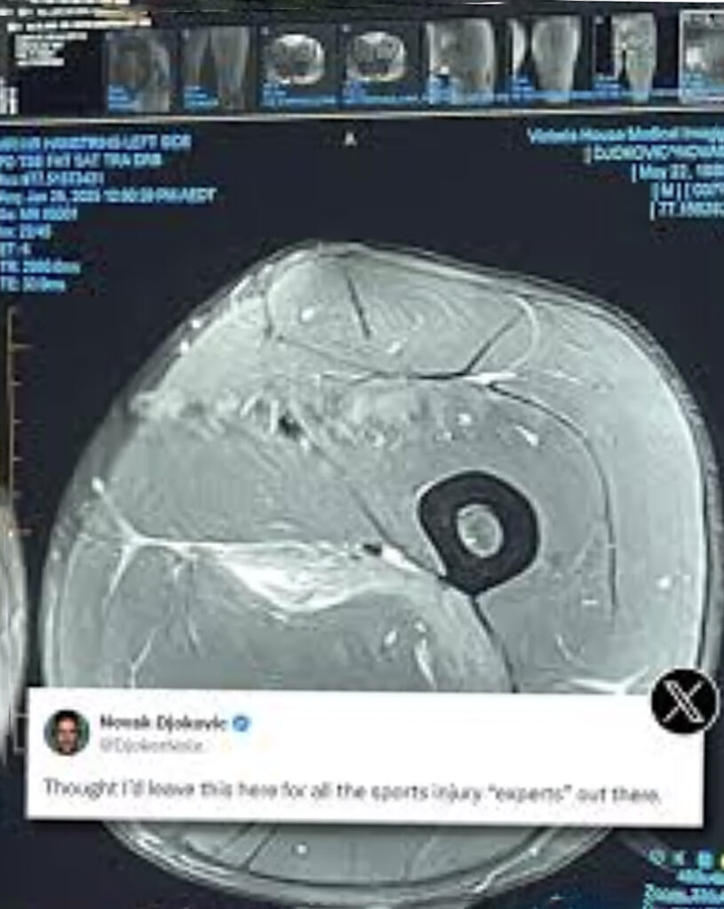 “Thought I’d leave this here for all the sports injury ‘experts’ out there,” the 10-time Australian Open champion posted along with the MRI image which showed serious bruising inside his thigh.