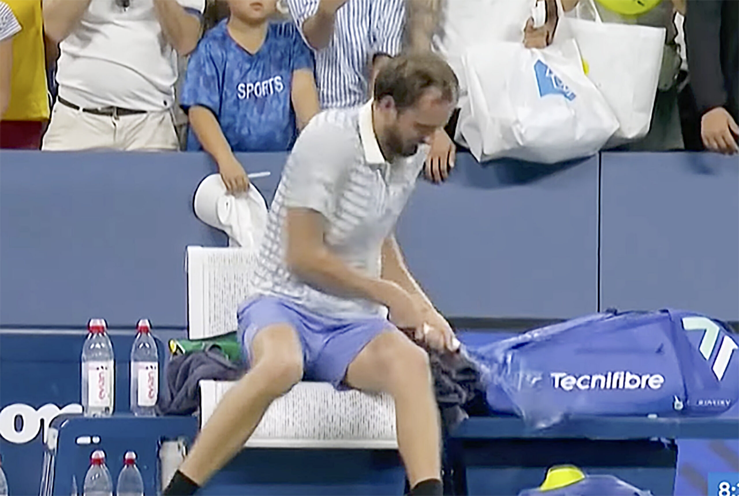 The incident was sparked as a clueless photographer walked onto the court between serves in a match point situation.