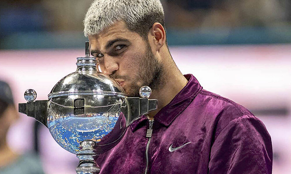 Carlo Alcaraz lifted his eighth trophy of the season on Tuesday at the oddly scheduled Japan Open final, crushing Taylor Fritz 6-4, 6-4 in 92 minutes....